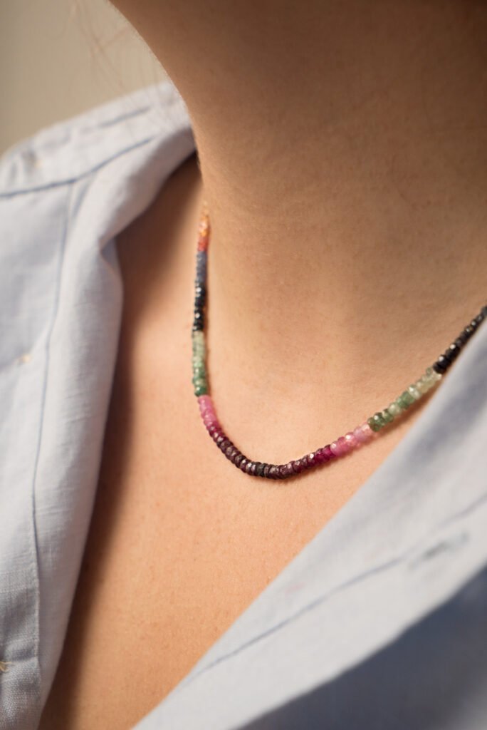 Le pietre aggiungono colore, texture e significato. Le pietre naturali più amate per le collane donna: turchese (il classico estivo), ametista (eleganza viola), quarzo rosa (romanticismo), lapislazzuli (blu profondo), perle d’acqua dolce (classicismo), corallo (tradizione mediterranea — ma attenzione: compra solo corallo certificato e sostenibile).