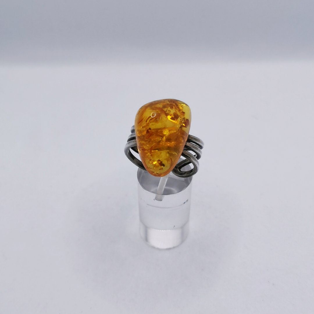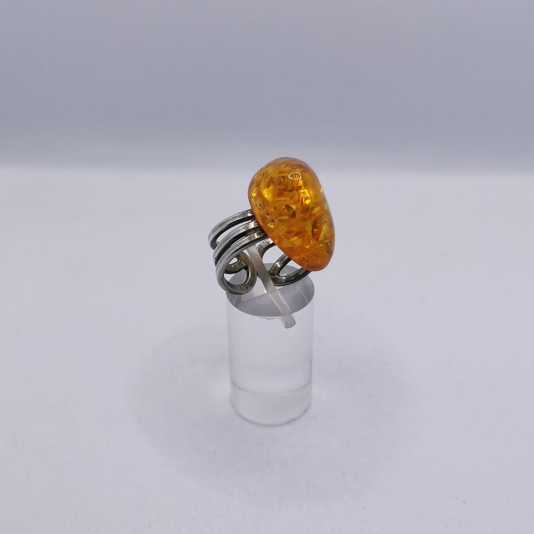 Anello con Ambra Baltica naturale in argento interamente rifinito a mano
