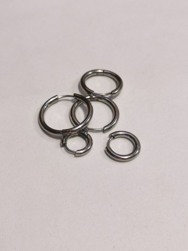 Orecchino in acciaio con design elegante. Un accessorio pratico e raffinato che aggiunge un tocco di stile.