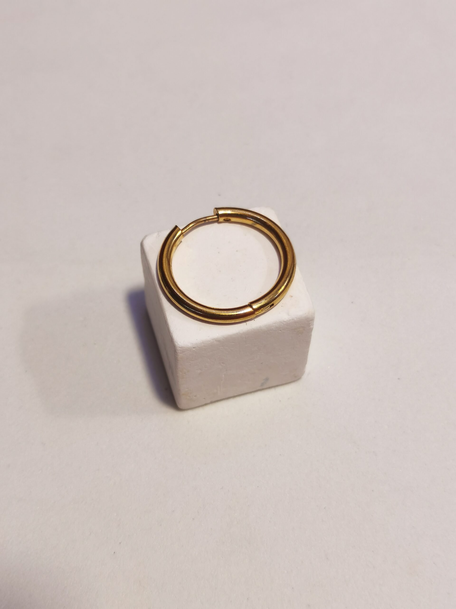Orecchino a cerchietto in acciaio dorato dal design moderno e minimalista.