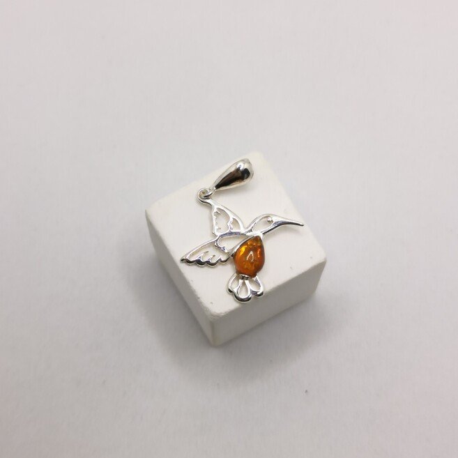 Ciondolo Colibrì Ambra uccello gioiello argento 925.