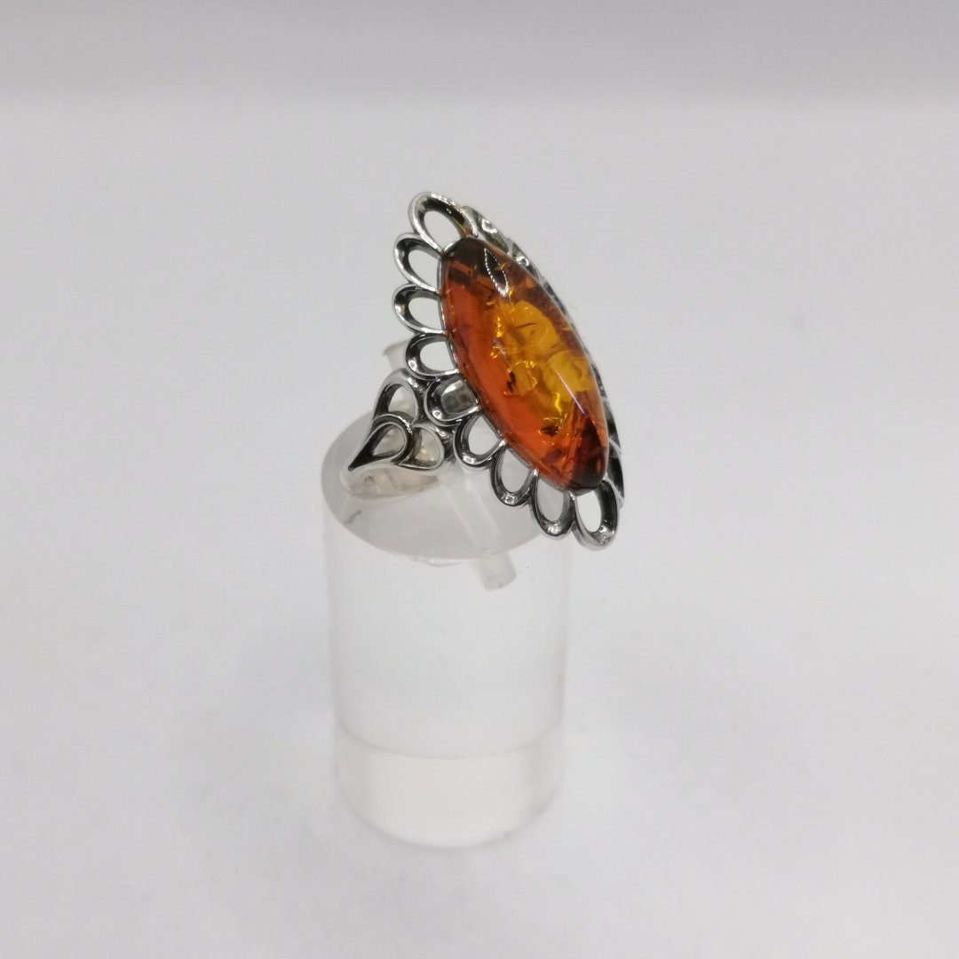 anello in argento con ambra naturale in argento 925. Misura regolabile. Gioiello di qualità per chi cerca eleganza e raffinatezza italiana.