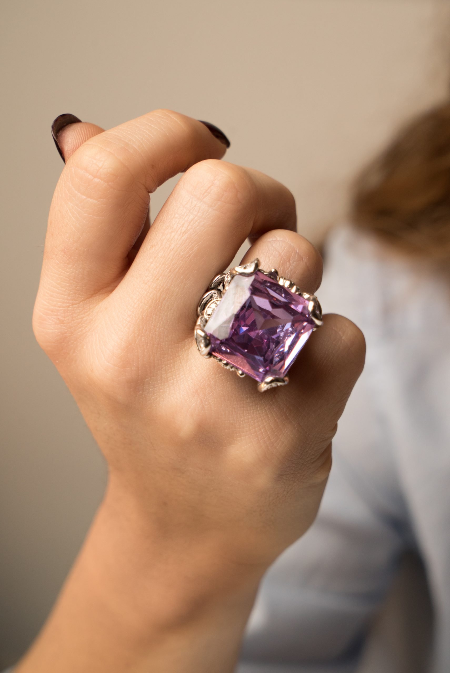 anello in argento con ametista naturale in argento 925. Gioiello di qualità per chi cerca eleganza e raffinatezza italiana. Design elegante e raffinato per ogni occasione.
