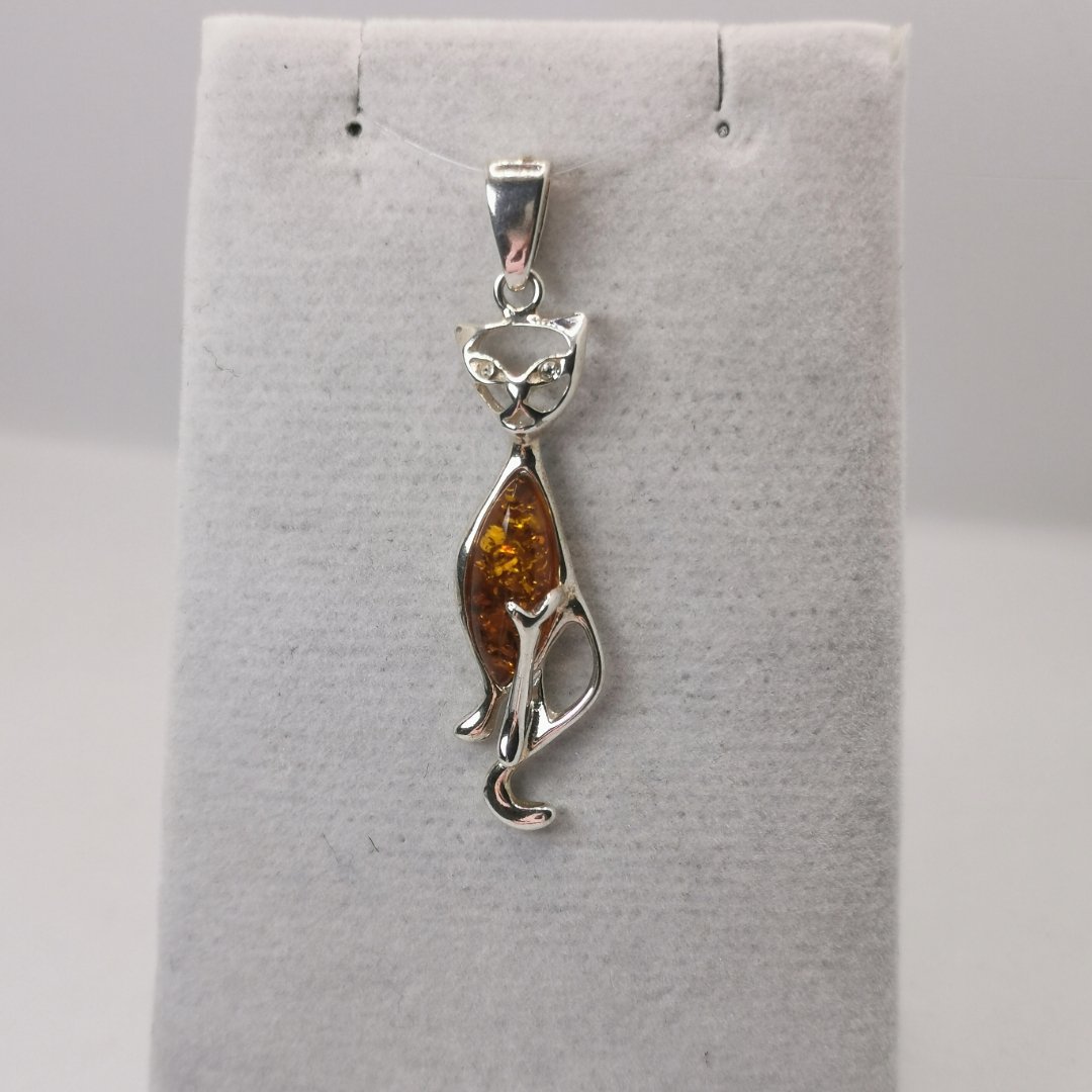 Ciondolo Gatto Egiziano stile Bastet Ambra argento.