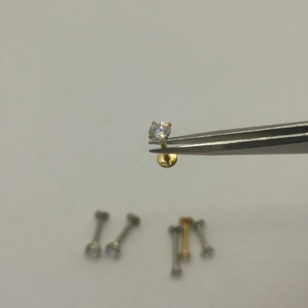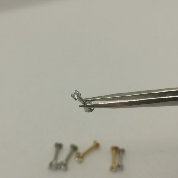 La filettatura interna previene irritazioni durante l’inserimento. Per piercing orali, risciacqua con collutorio senza alcol dopo i pasti. Per piercing all’orecchio, soluzione salina due volte al giorno.