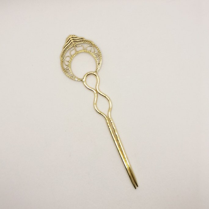 Eleganti spilloni fermacapelli in ottone puro. Accessori artigianali che impreziosiscono le acconciature con la bellezza del metallo lavorato.