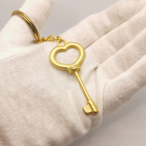 Portachiavi a forma di chiave con cuore realizzati in lega di zama con finitura dorata.