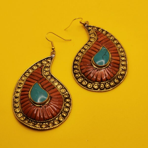 Orecchini artigianali in lega di ottone anallergico con pietre naturali quali turchese e corallo bambù