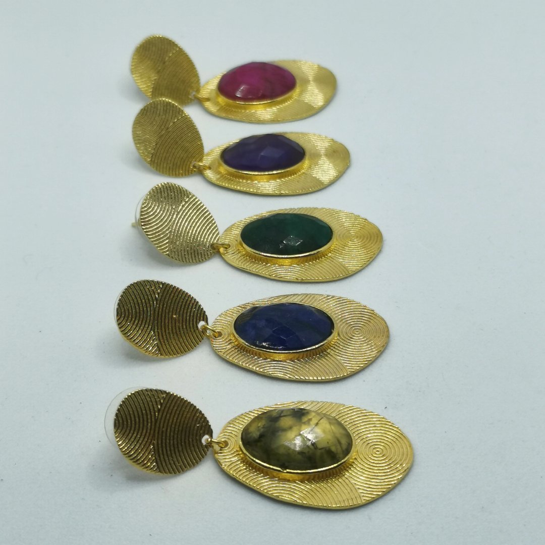 Originali orecchini in ottone Impronta con pietra naturale. Gioielli artigianali in ottone dal design unico che combina texture organica e gemme.