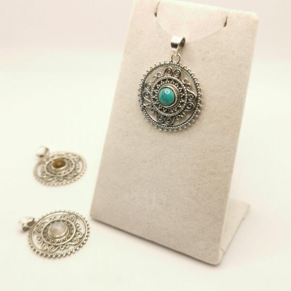 Questo Pendant – Etnic style & stones è un gioiello che celebra la bellezza naturale della pietra quarzo. Realizzato interamente a mano da artigiani esperti in argento 925, questo ciondolo in argento rappresenta l’eccellenza della tradizione orafa italiana. Il design accurato è stato studiato per valorizzare al massimo la gemma centrale, creando un accessorio di raffinata eleganza che cattura immediatamente l’attenzione e racconta una storia di maestria artigianale.