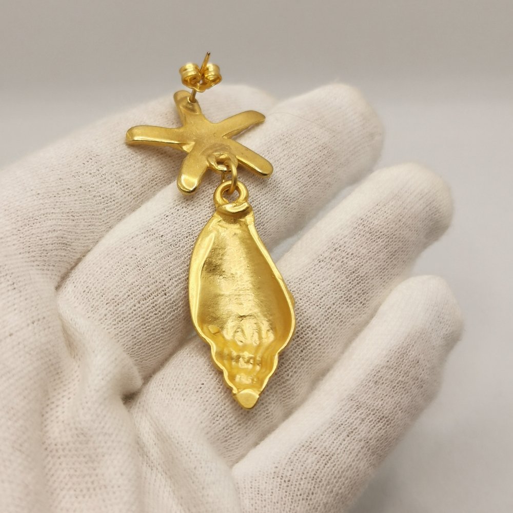 Questi Sea shell earrings incarnano l’essenza dello stile contemporaneo. Realizzati in lega di zama con una raffinata finitura dorata che cattura la luce, questi orecchini nascono dalla sapiente lavorazione artigianale che caratterizza ogni nostra creazione. Il design è stato pensato per chi desidera accessori capaci di raccontare una storia, pezzi unici che sanno farsi notare senza mai risultare eccessivi.