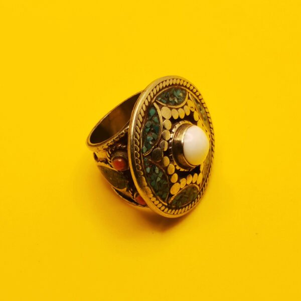 Anello in lega di ottone anallergico con pietre naturali quali turchese e diaspro bianco