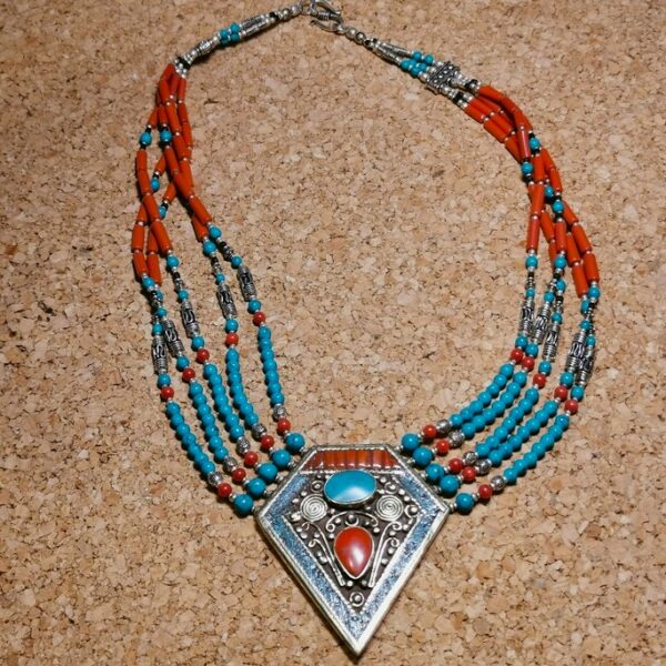 tibet, lega di ottone, collane, corallo bambù, turchese, ambra rossa, pietre naturali, pietre, pietra, stone, stones, brass, necklace, necklaces, coral, handmade, flag